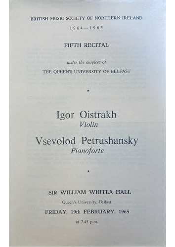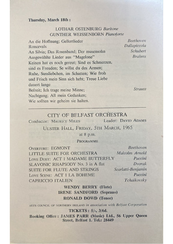 ULSTER HALL, FRIDAY, 5TH MARCH, 1965