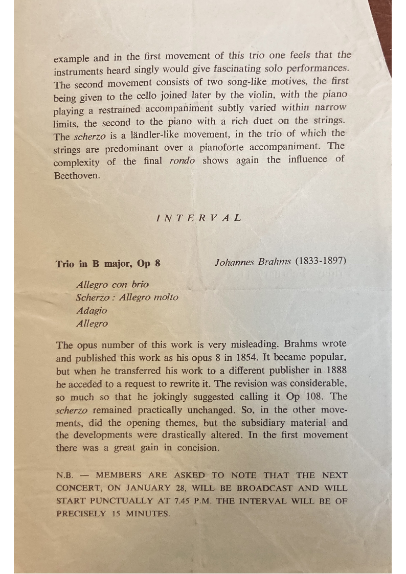 The second movement of this trio has material in common with