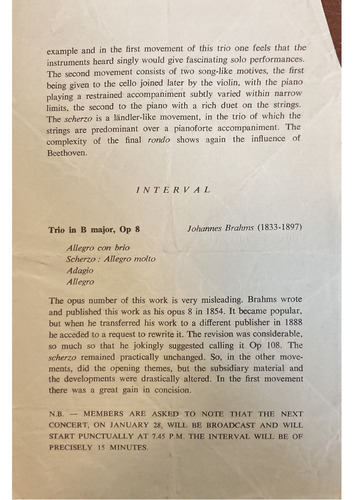 Trio in B major, Op 8