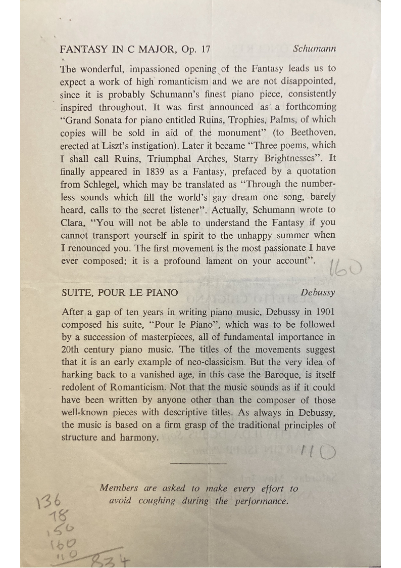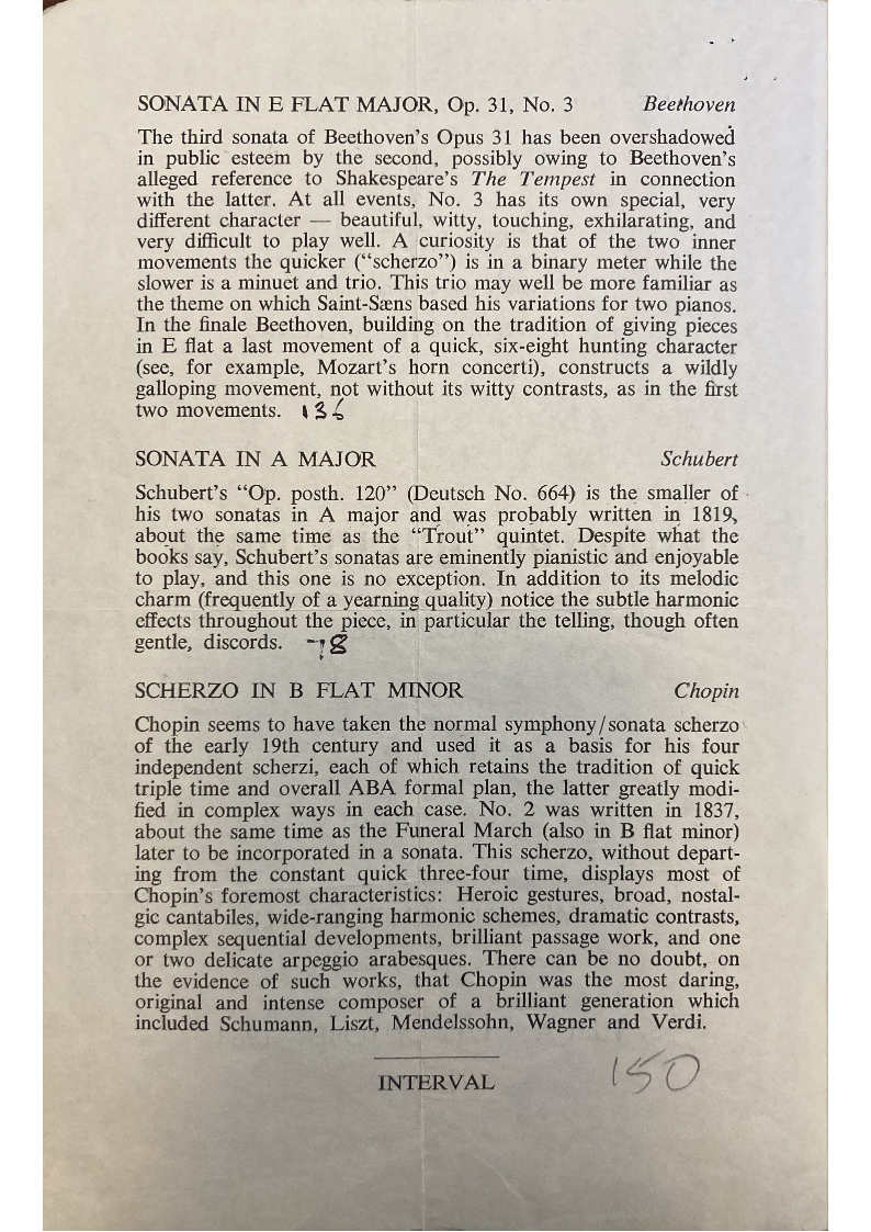 included Schumann, Liszt, Mendelssohn, Wagner and Verdi.