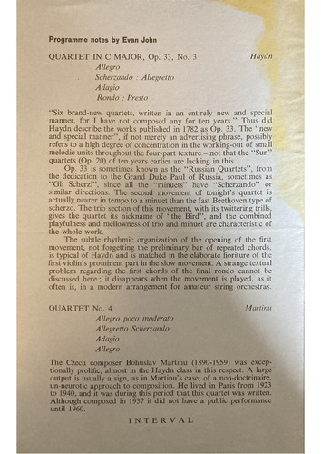 Programme notes by Evan John