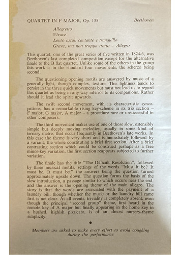 QUARTET IN F MAJOR, Op. 135