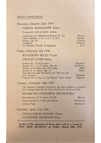 PRO ARTE QUARTET on Friday, March 20th, 1970.