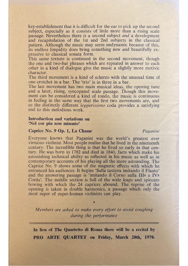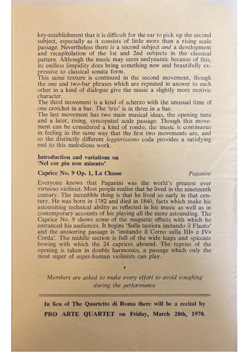 PRO ARTE QUARTET on Friday, March 20th, 1970.