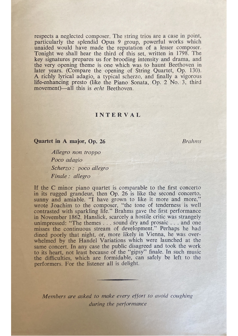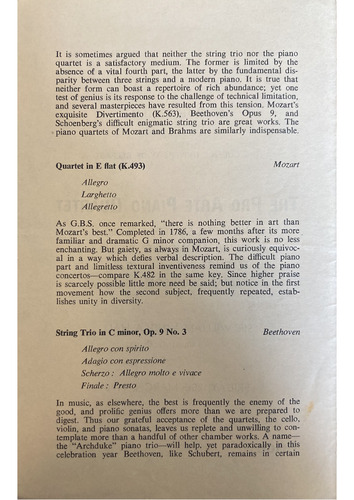 piano quartets of Mozart and Brahms are similarly indispensable.