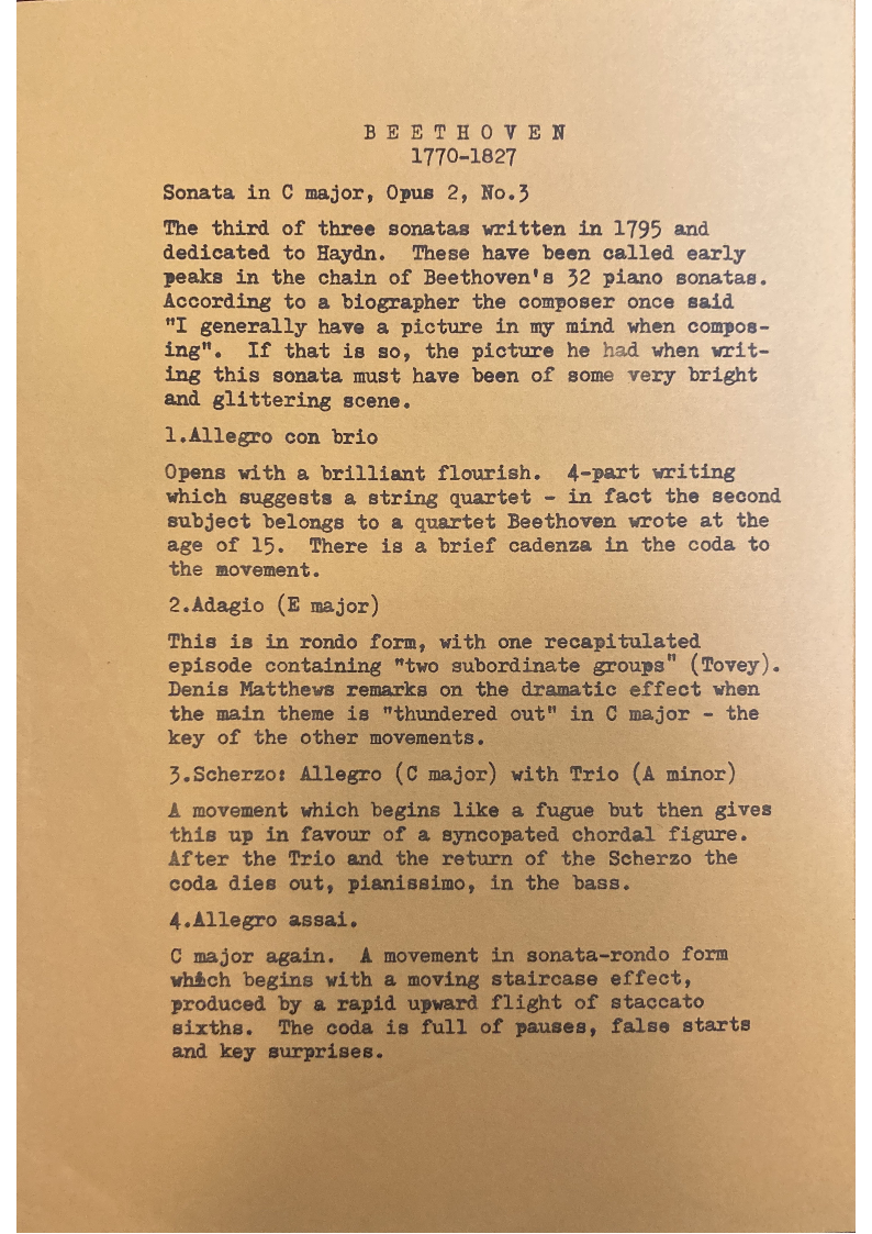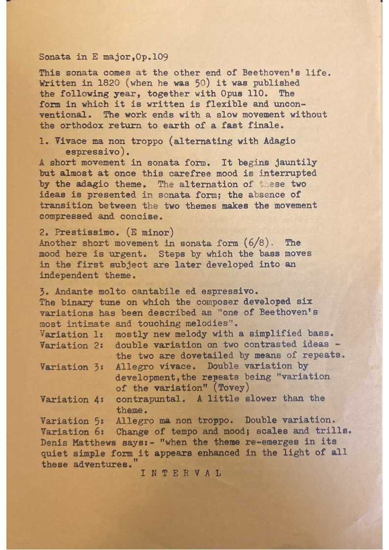 This sonata comes at the other end of Beethoven's life.