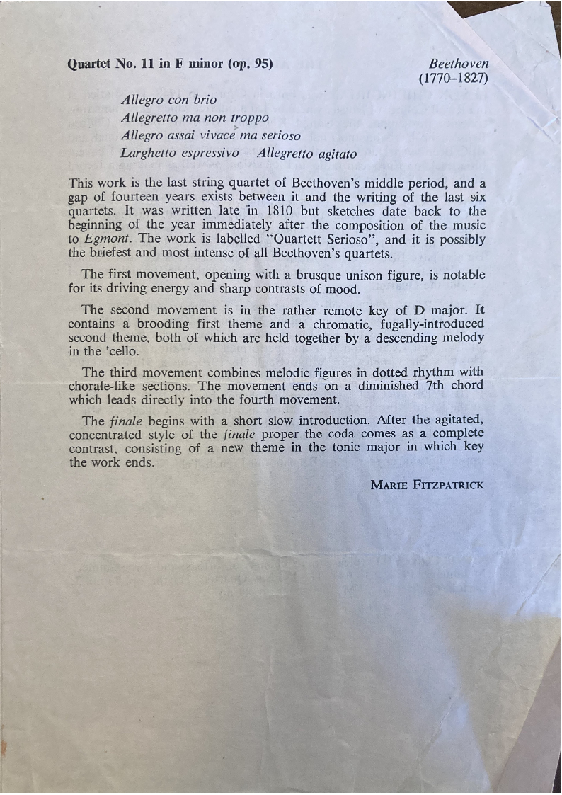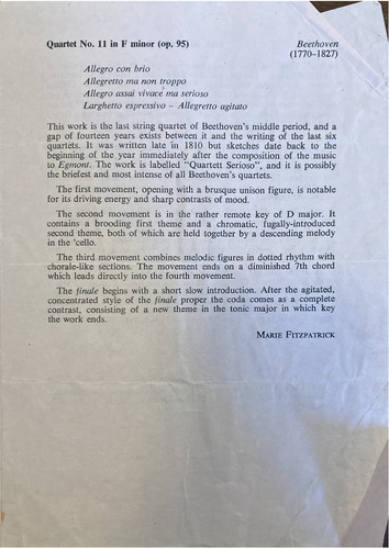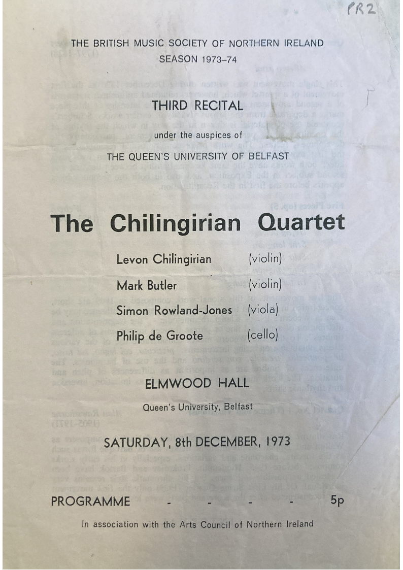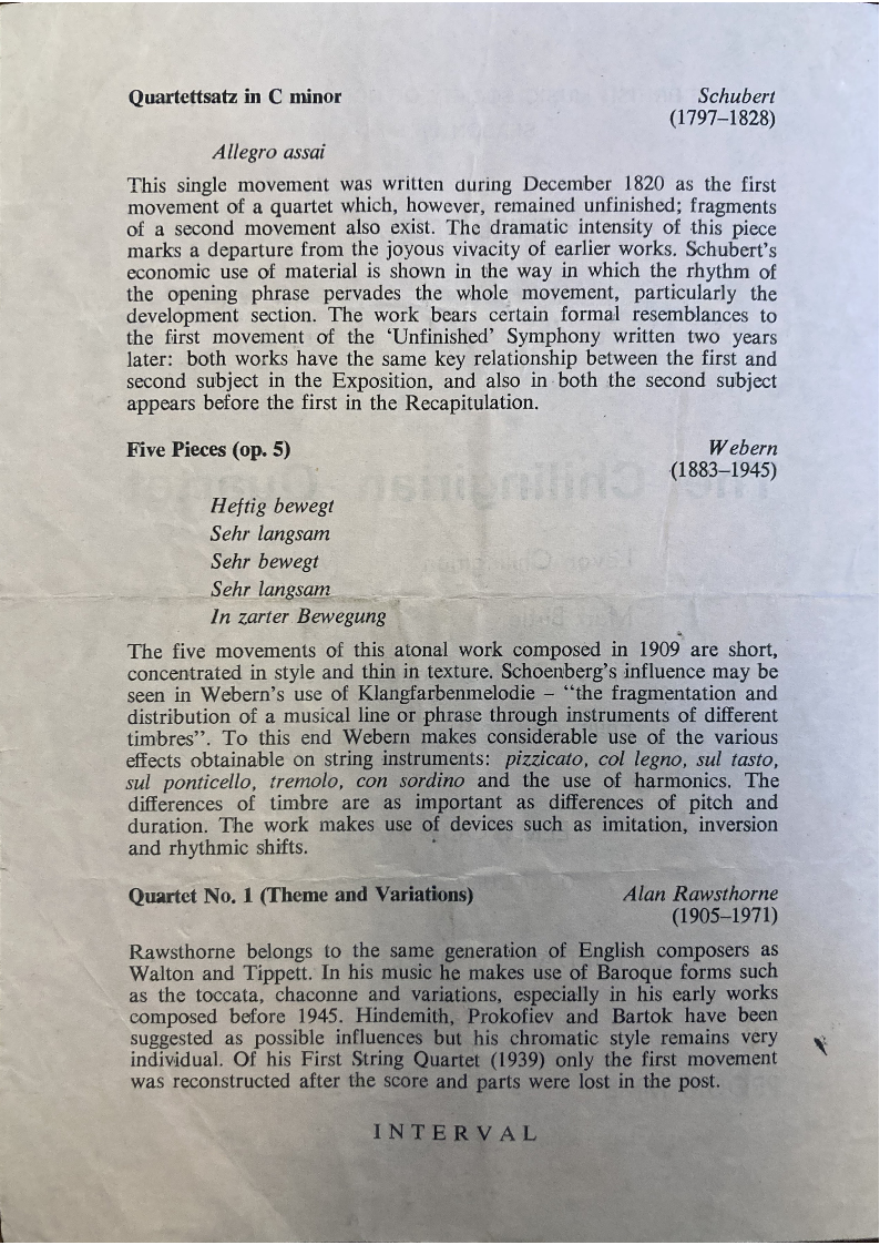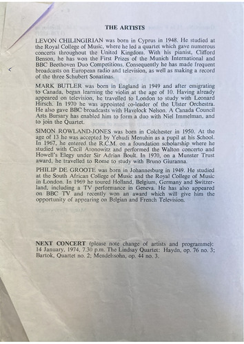 14 January, 1974, 7.30 p.m. The Lindsay Quartet: Haydn, op. 76 no. 3;