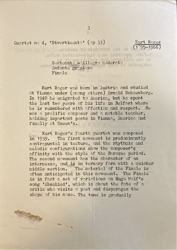 Kurt Roger's fourth quartet was composed