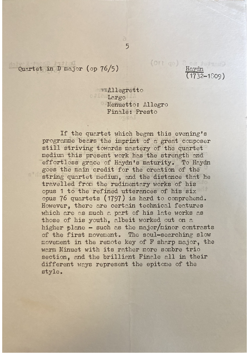 TBC The five movements of this quartet