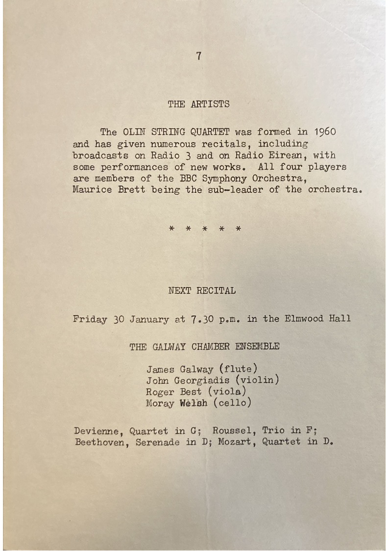 The OLIN STRING QUARTET was formed in 1960