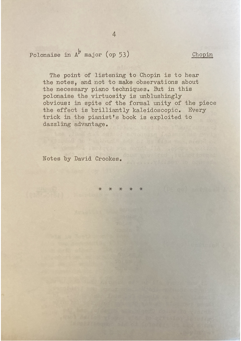 Notes by David Crookes.