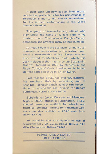 Night), £9.00; student's subscription, £4.50;