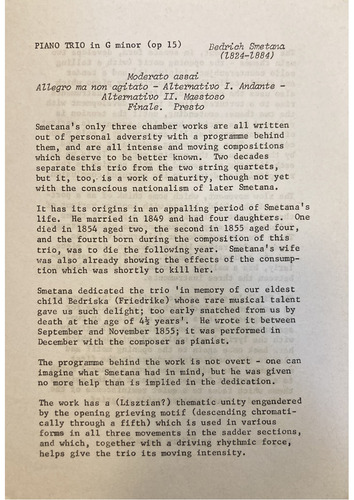trio, was to die the following year. Smetana's wife