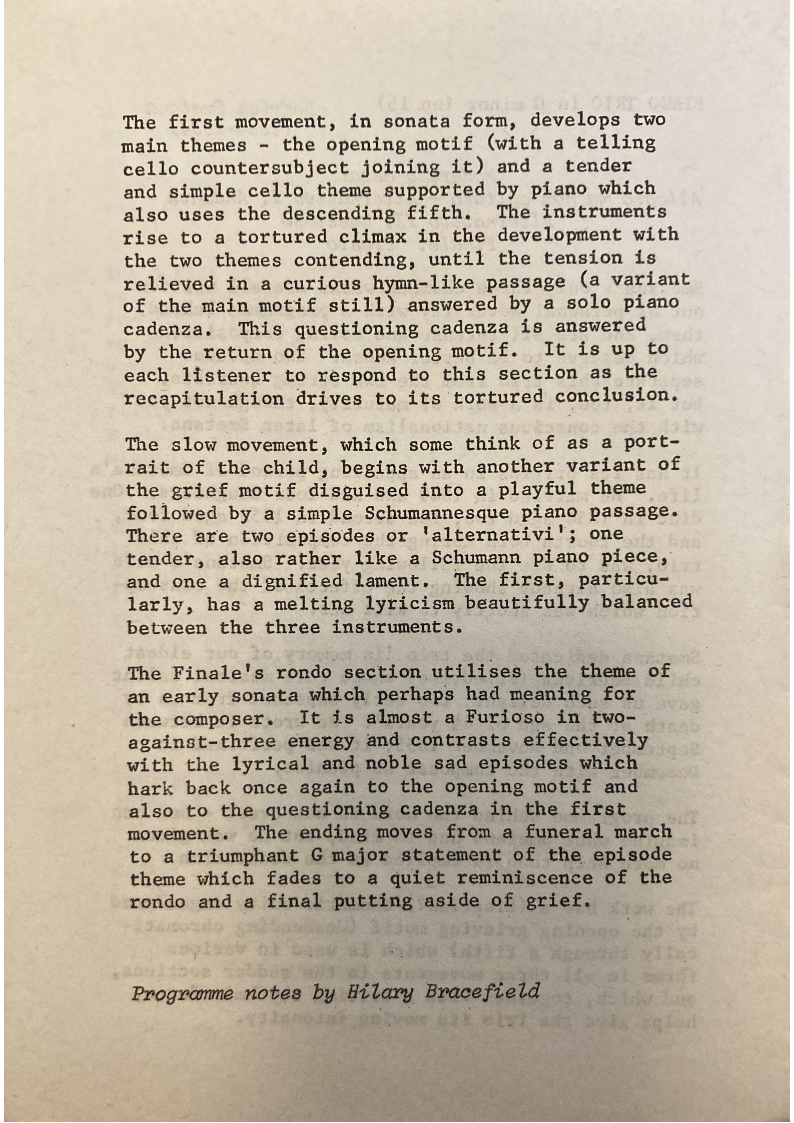 Programme notes by Hilary Bracefield