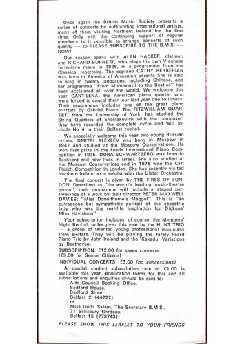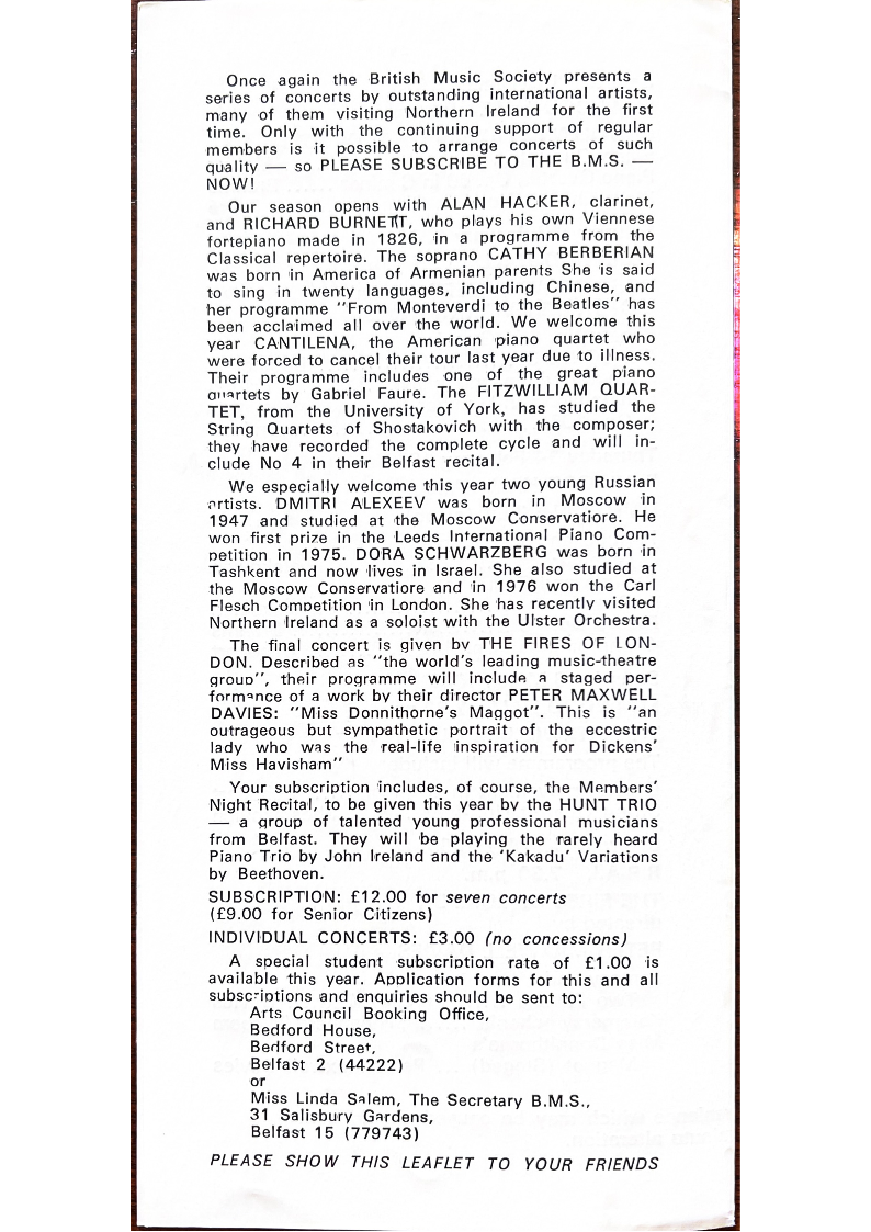 INDIVIDUAL CONCERTS: £3.00 (no concessions)