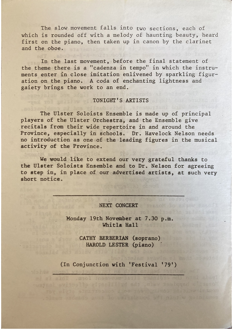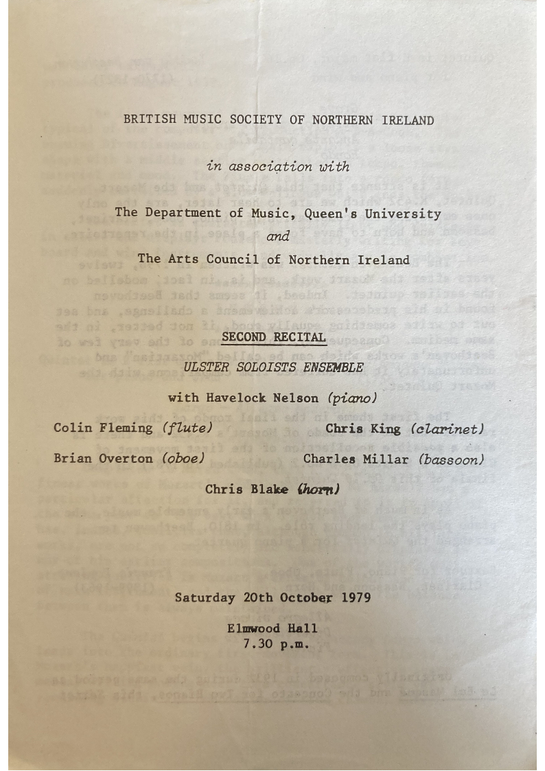the Ulster Soloists Ensemble and to Dr. Nelson for agreeing