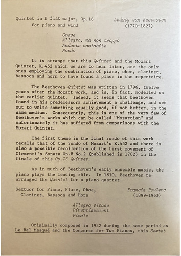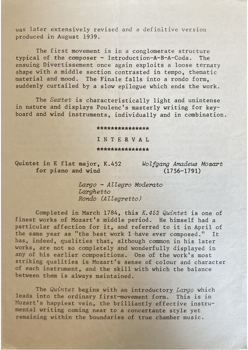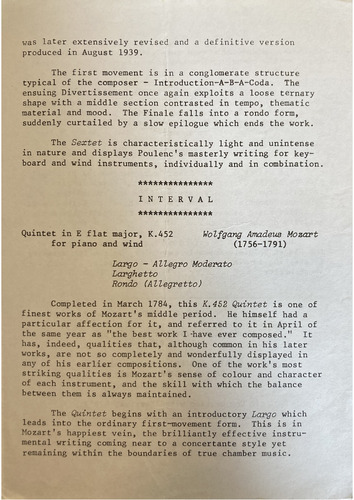 Le Bal Masqué and the Concerto for Two Pianos, this Sextet