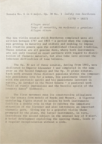 Sonata No. 6 in G major. Op. 30 No. 3 Ludwig van Beethoven