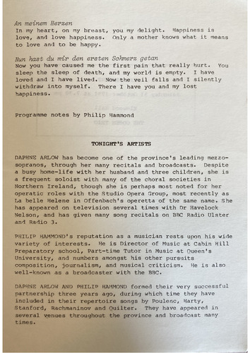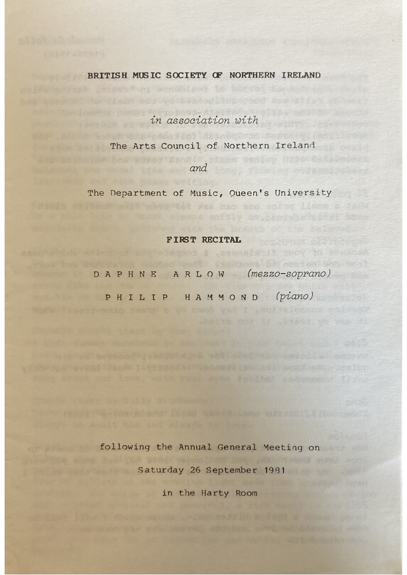 Nelson, and has given many song recitals on BBC Radio Ulster