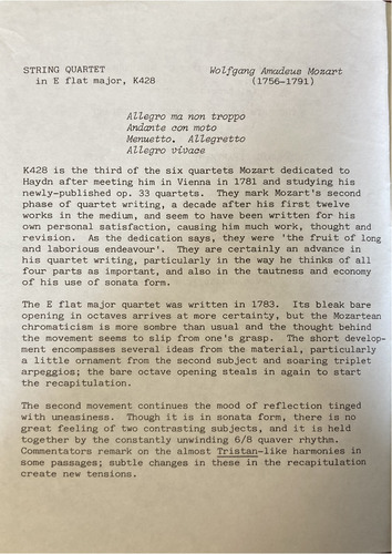 K428 is the third of the six quartets Mozart dedicated to
