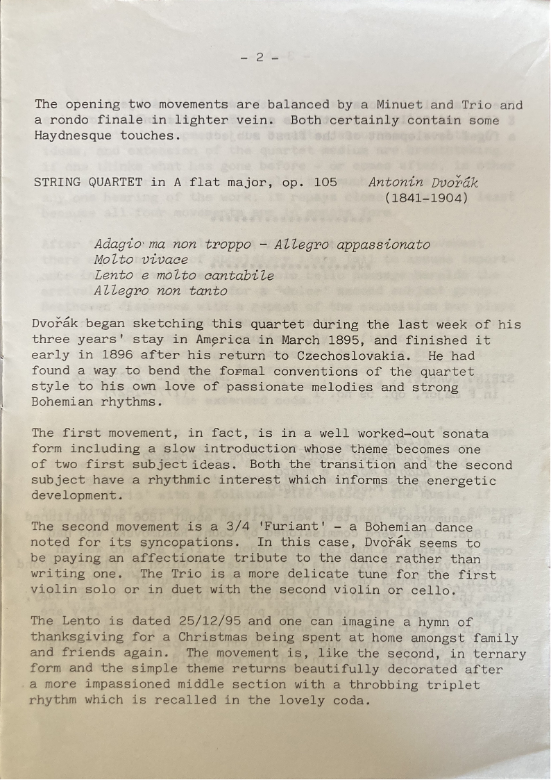 STRING QUARTET in A flat major, op. 105 Antonín Dvořák
