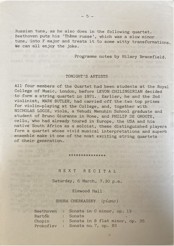 Programme notes by Hilary Bracefield.