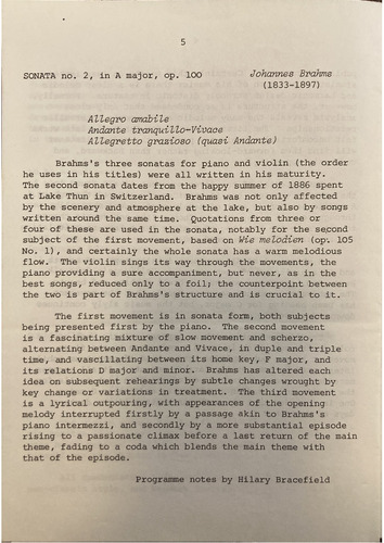 Programme notes by Hilary Bracefield