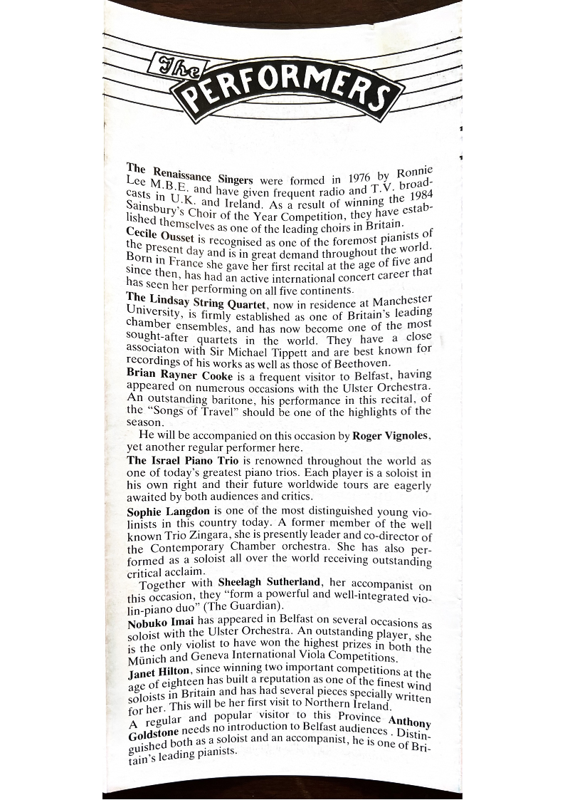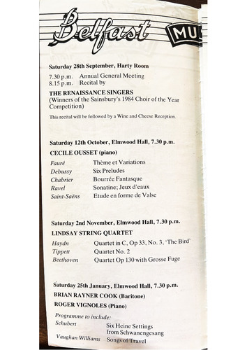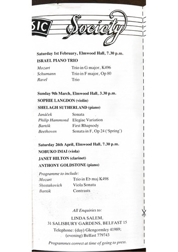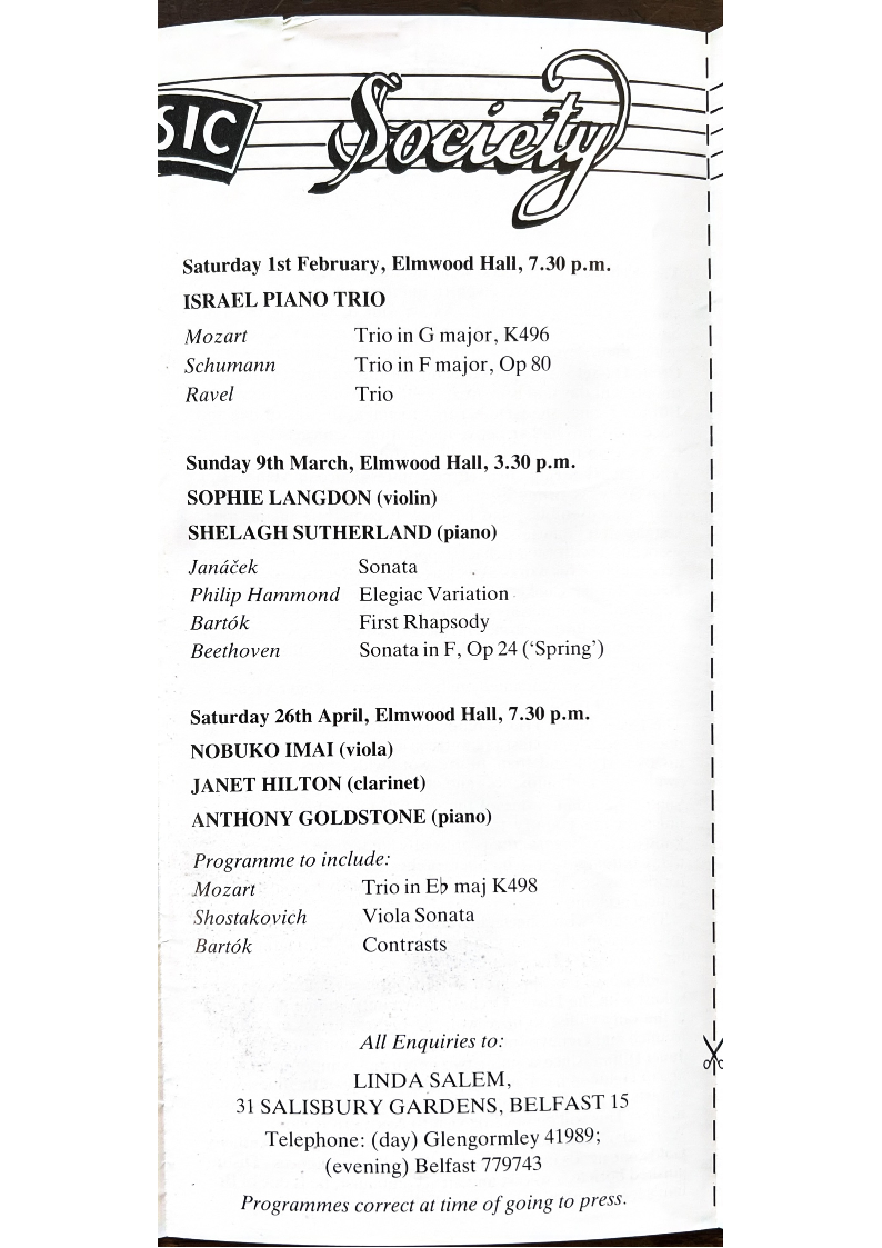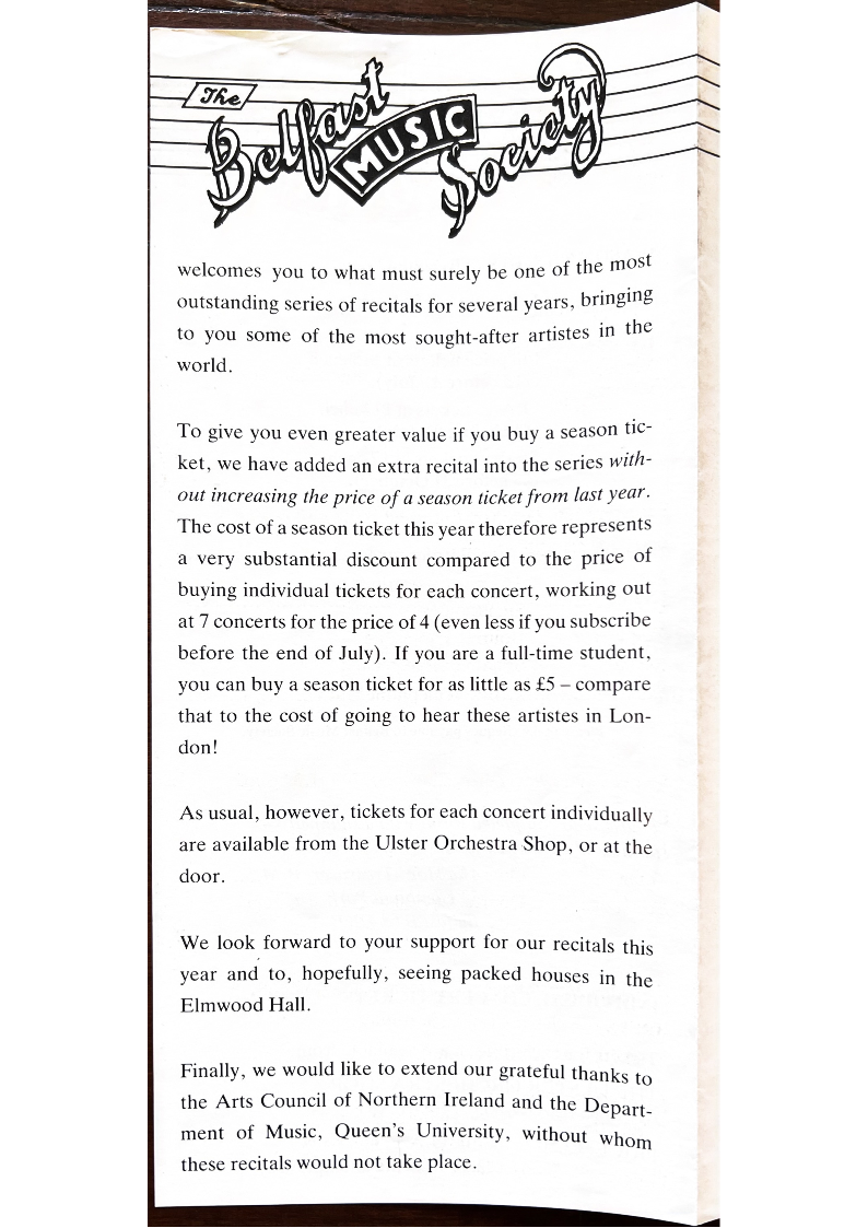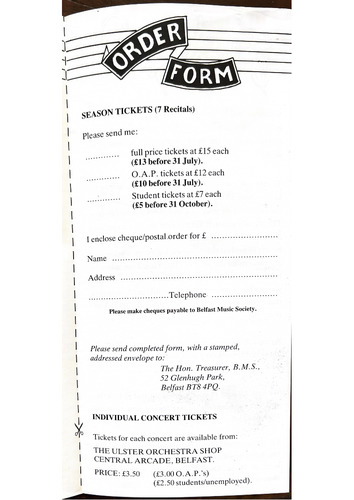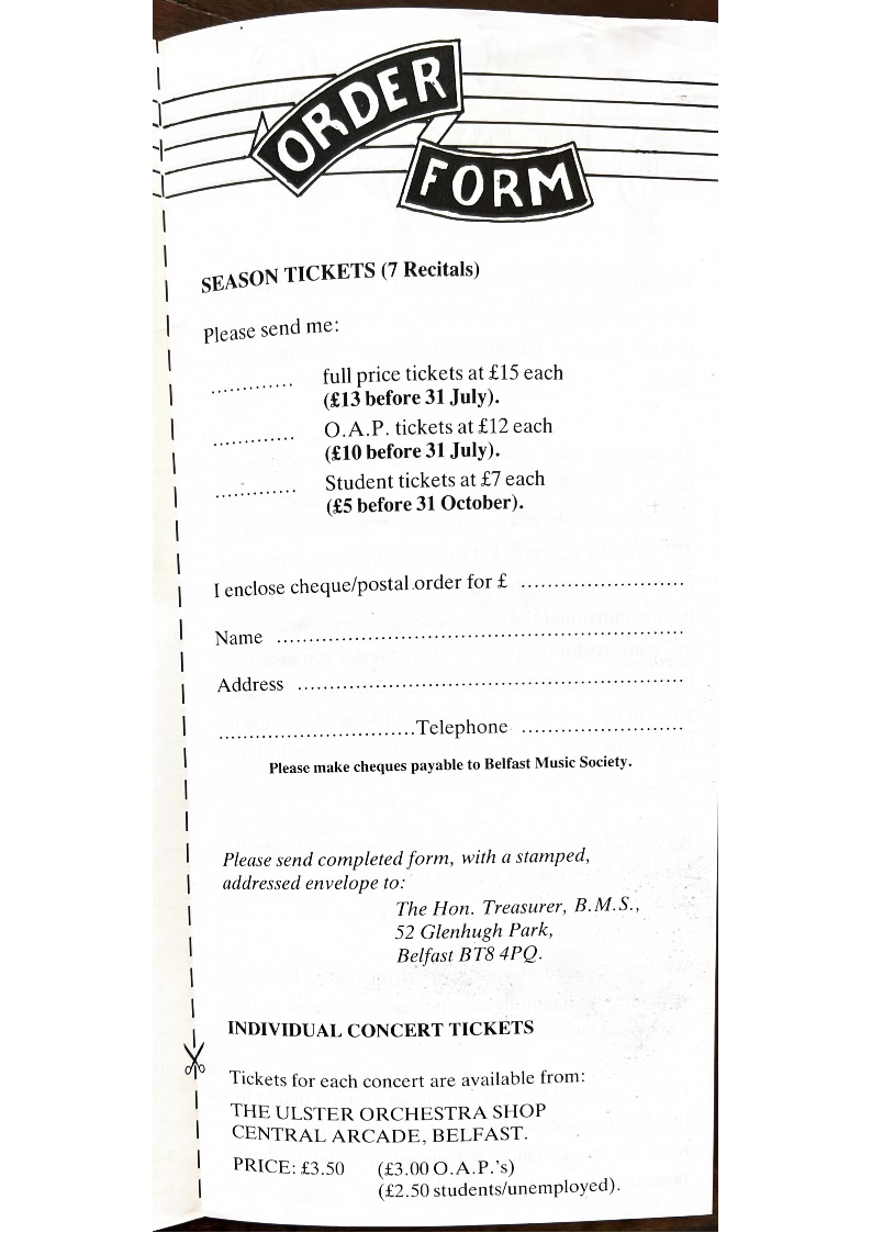 Please make cheques payable to Belfast Music Society.