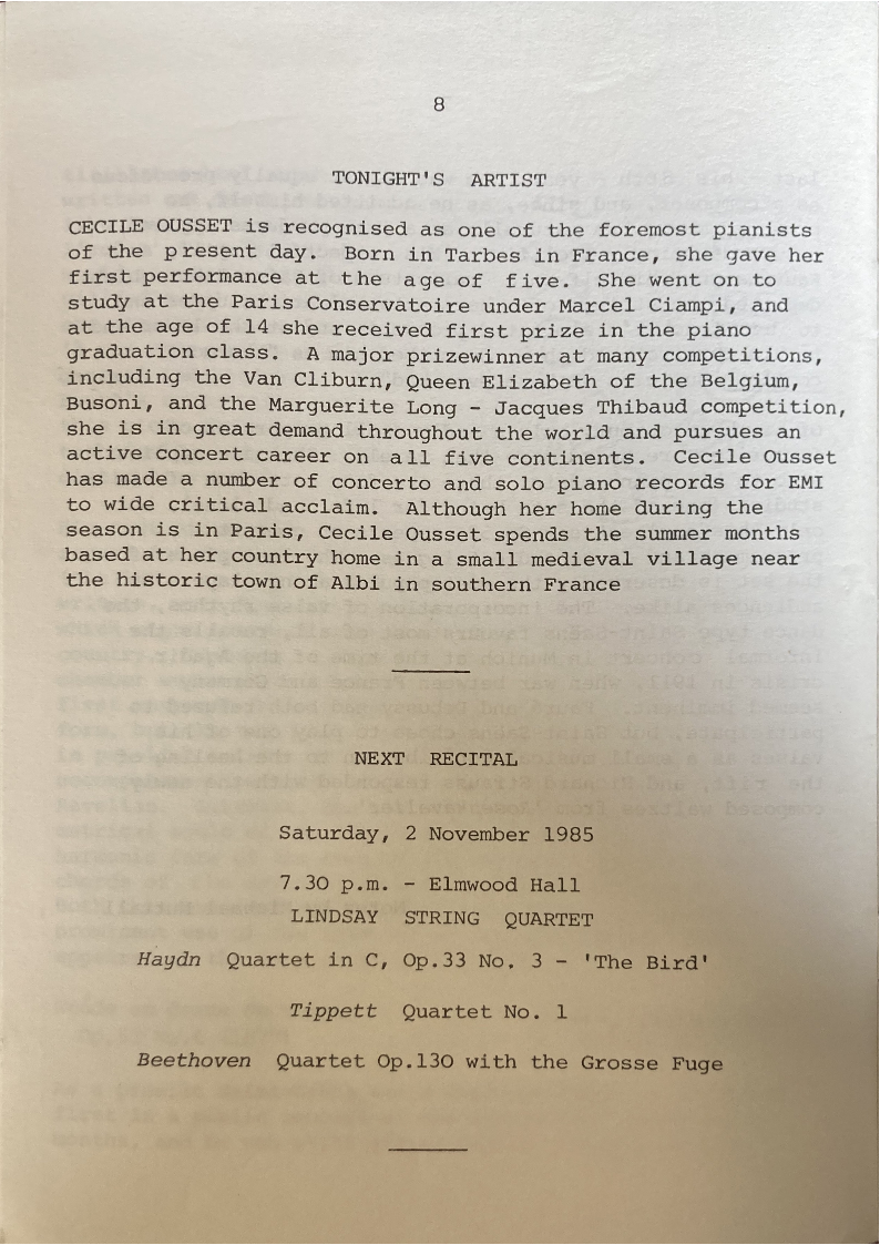 active concert career on all five continents. Cecile Ousset