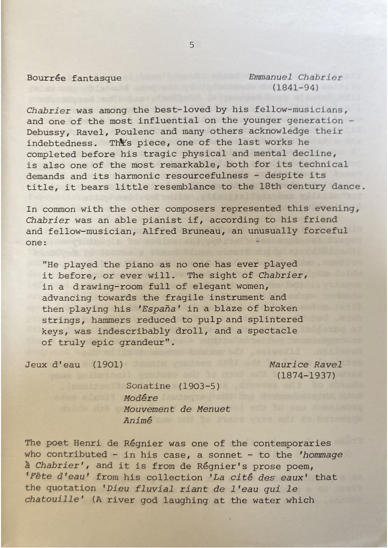 Chabrier made recordings of some of their own keyboard