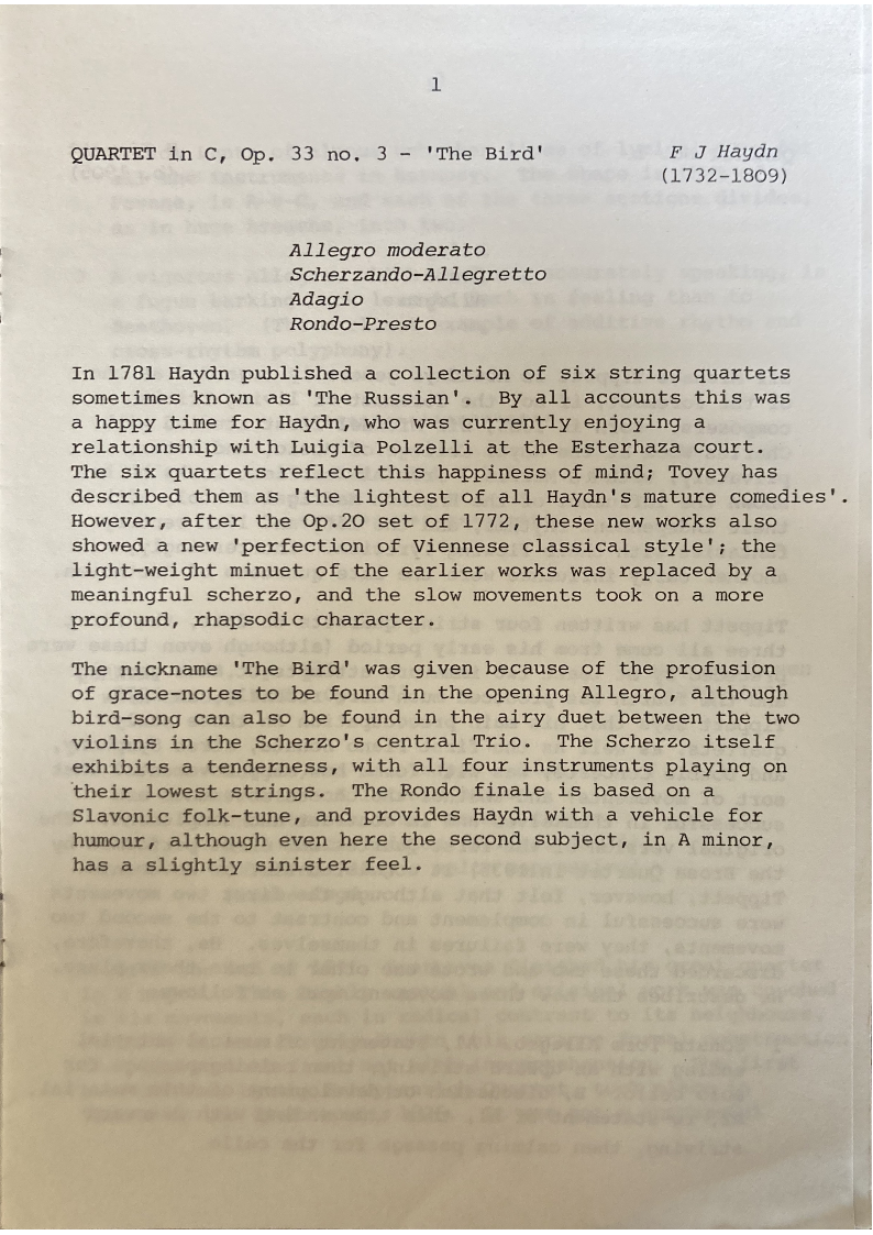 QUARTET in C, Op. 33 no. 3 - 'The Bird'