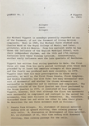 Tippett has written four string quartets to date, the first