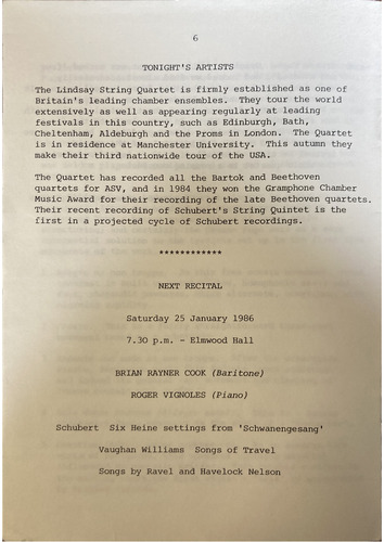 Cheltenham, Aldeburgh and the Proms in London. The Quartet