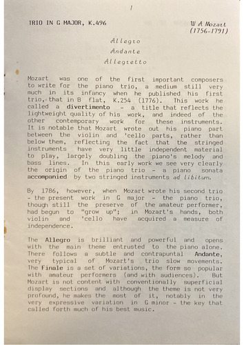 TRIO IN G MAJOR, K.496