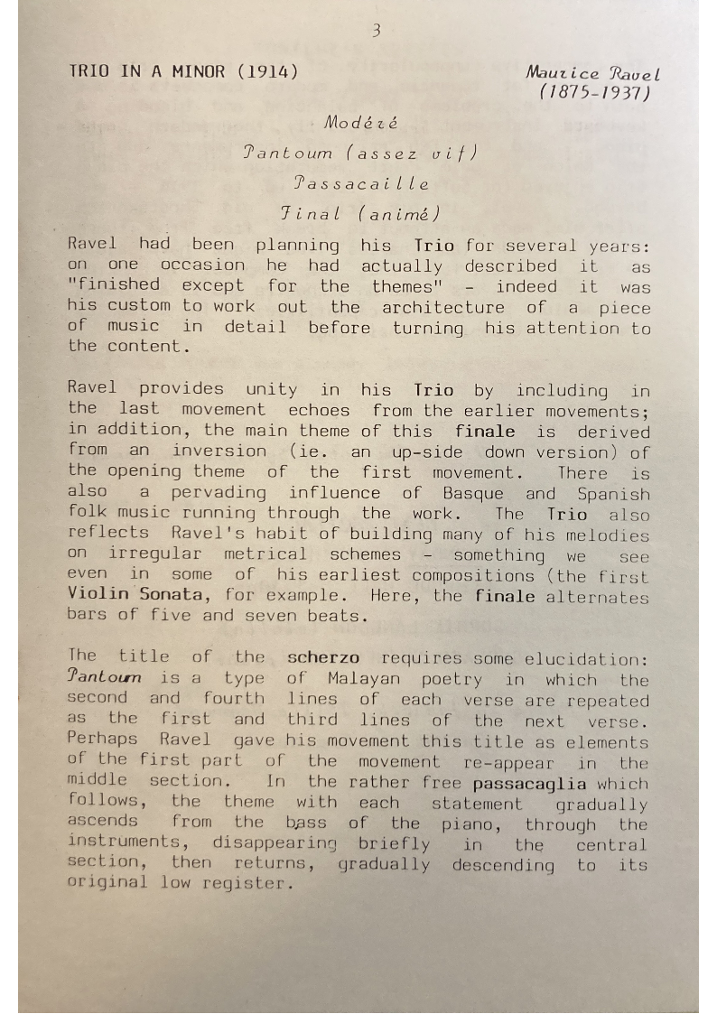 Ravel provides unity in his Trio by including in