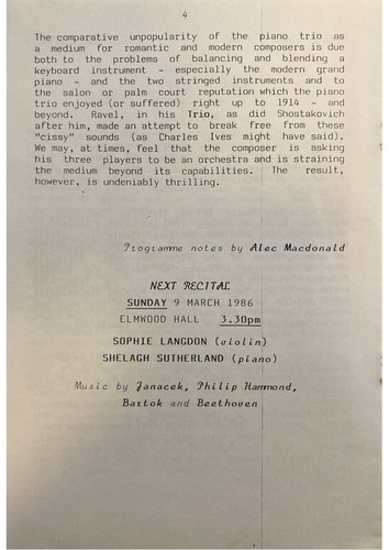 Programme notes by Alec Macdonald