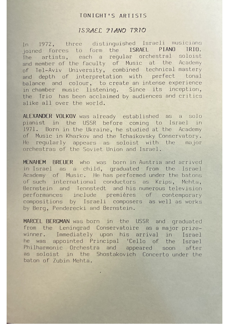 distinguished Israeli musicians