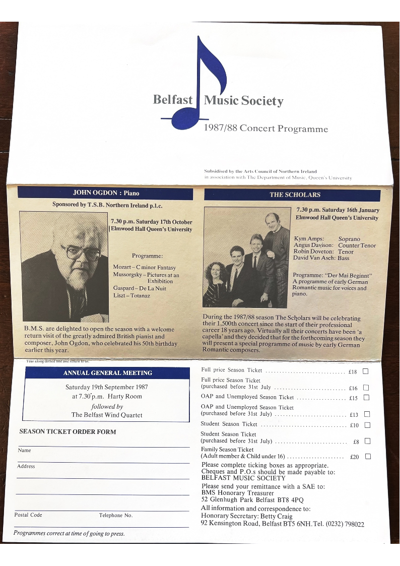 Saturday 12th March 1988 Elmwood Hall Queen's University