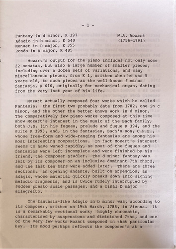 Fantasia; the first two probably date from 1782, one in c
