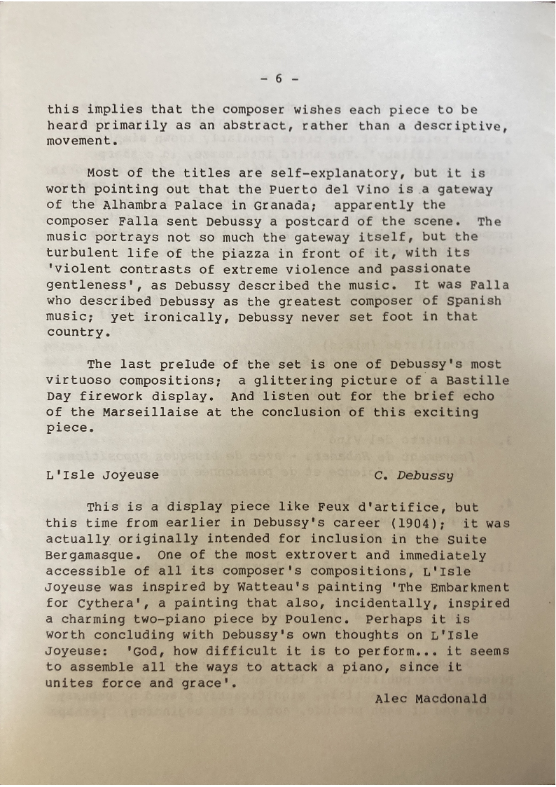 worth concluding with Debussy's own thoughts on L'Isle