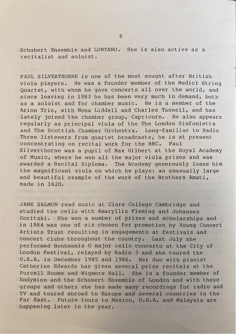 Arion Trio, with Nona Liddell and Charles Tunnell, and has