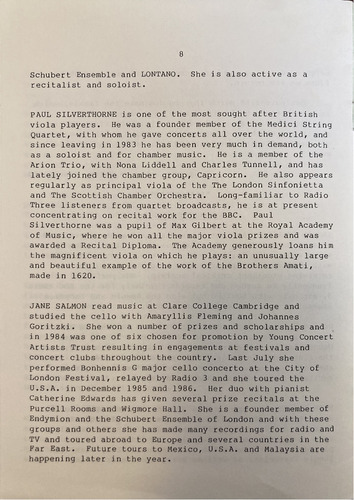 Ensemble and the Grosvenor Chamber Group; early music groups