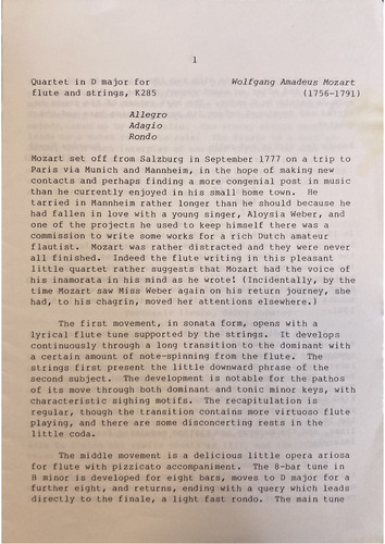 flautist. Mozart was rather distracted and they were never