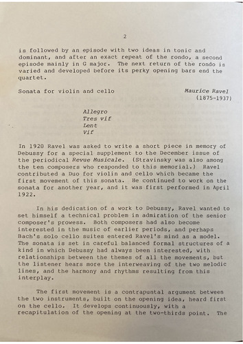 Bach's solo cello suites entered Ravel's mind as a model.