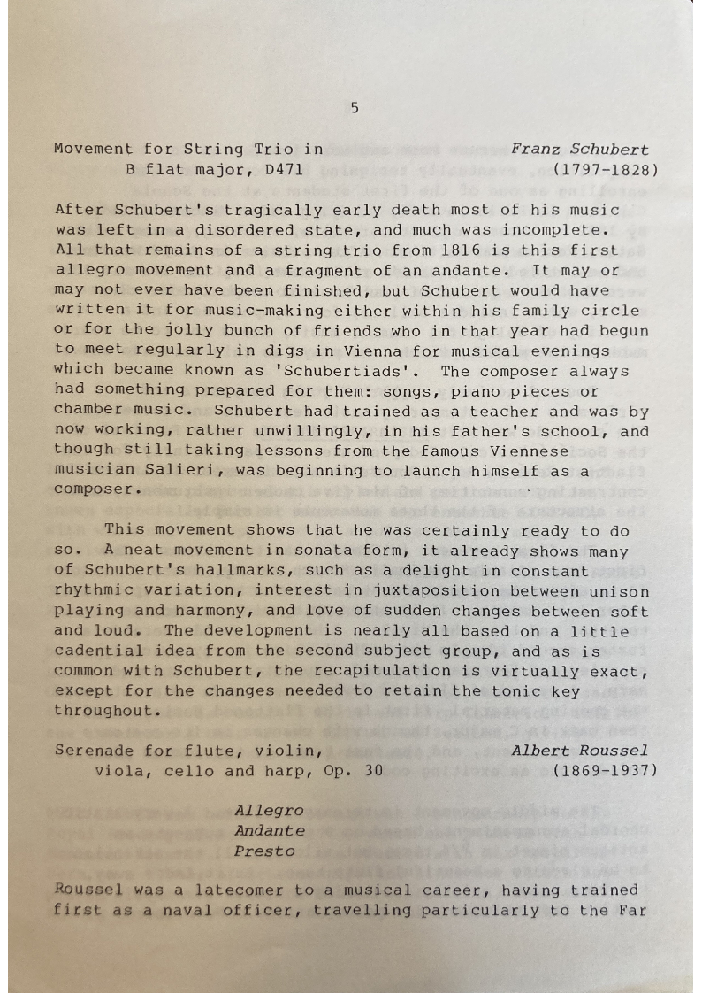 contributed a Duo for violin and cello which became the