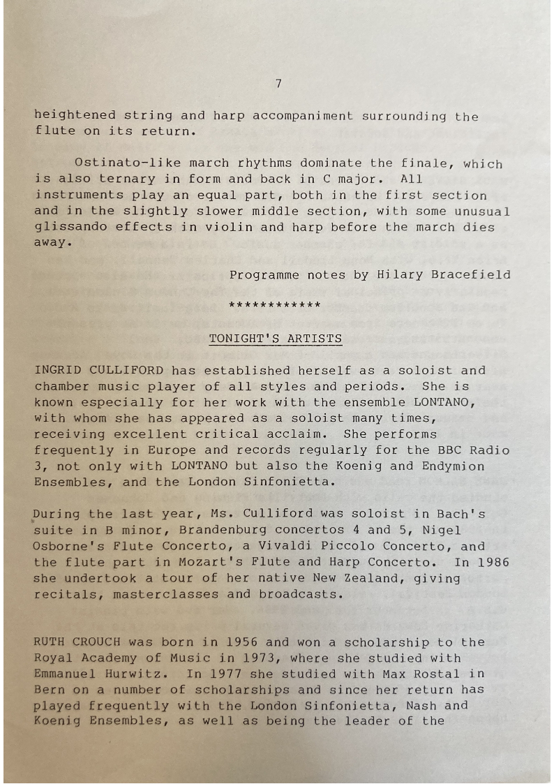 Programme notes by Hilary Bracefield