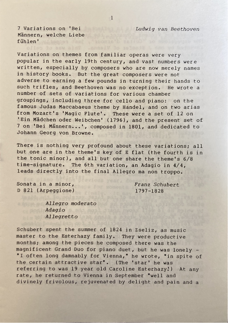 groupings, including three for cello and piano: on the