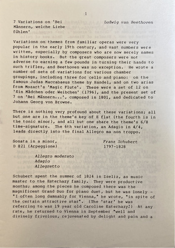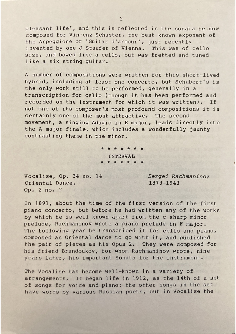 scale, the first cello concerto, and the Romance from the