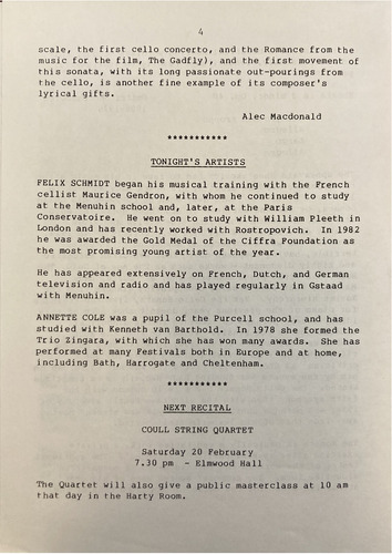 London and has recently worked with Rostropovich. In 1982