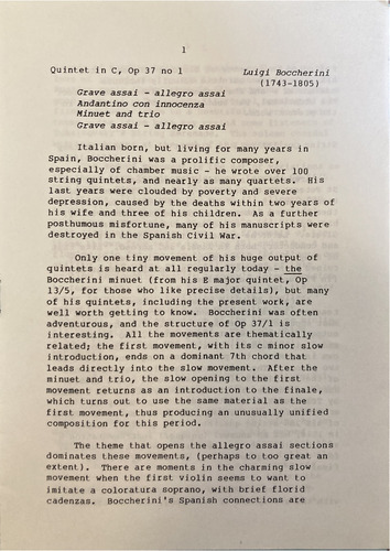 well worth getting to know. Boccherini was often